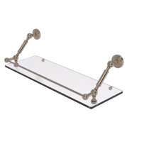 What is the price range for glass bathroom shelves? Mounting hardware is included for your convenience. Each shelf comes with two chrome brackets that mount easily to the wall. The average price for glass bathroom shelves ranges from $20 to $250. Buy top selling products like allied brass waverly place tempered glass shelf and allied brass waverly place tempered glass shelf with gallery rail.